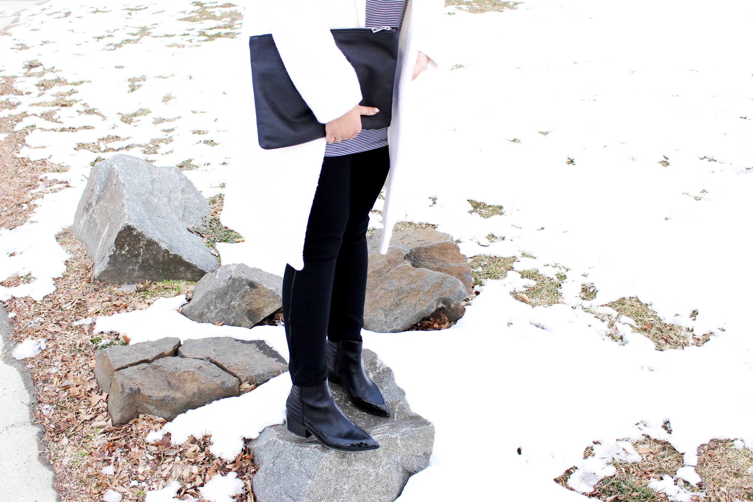 Coat, clutch & top: Forever 21 | Pants: Joe Fresh | Boots: ASOS | Shades: Spitfire Sunglasses