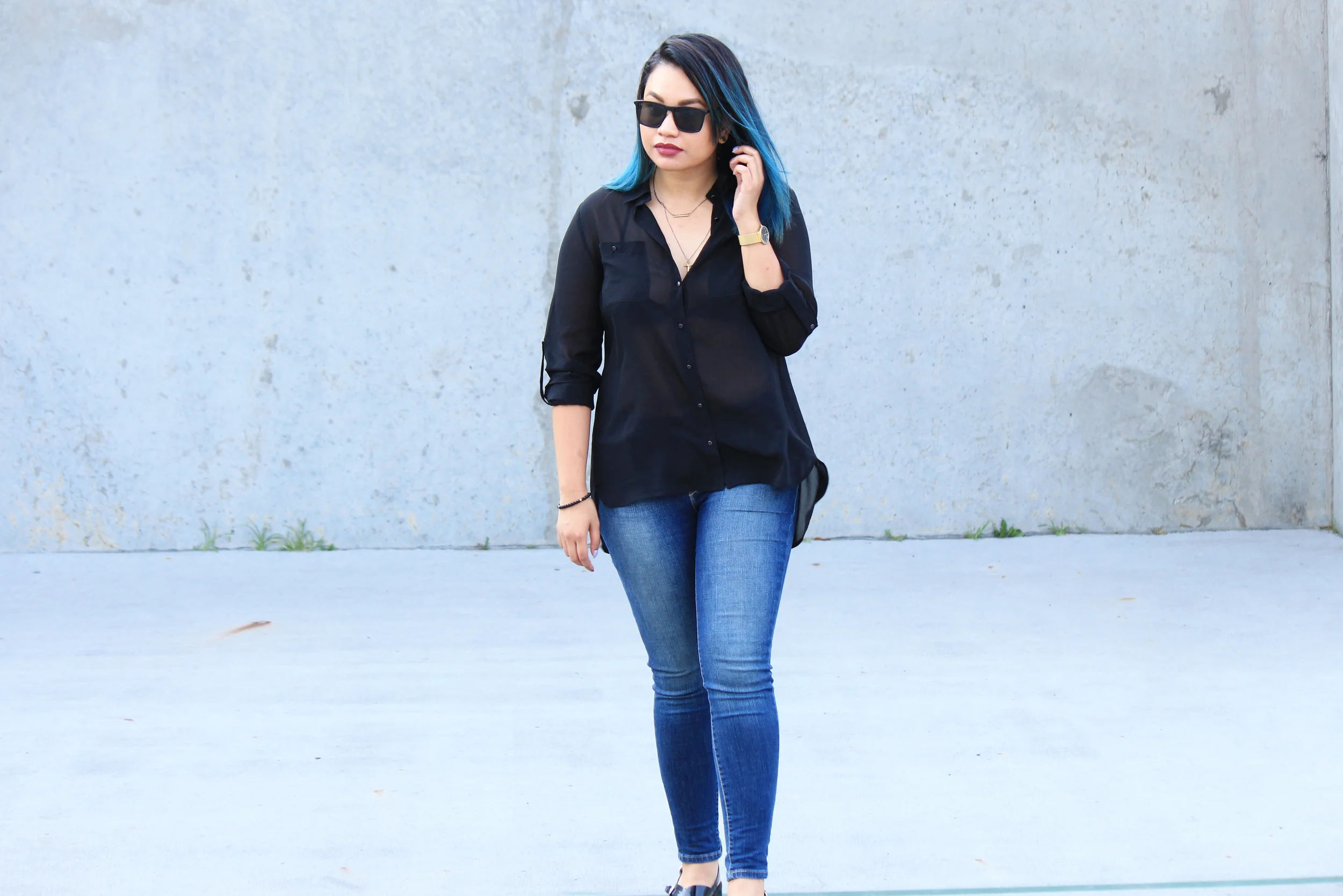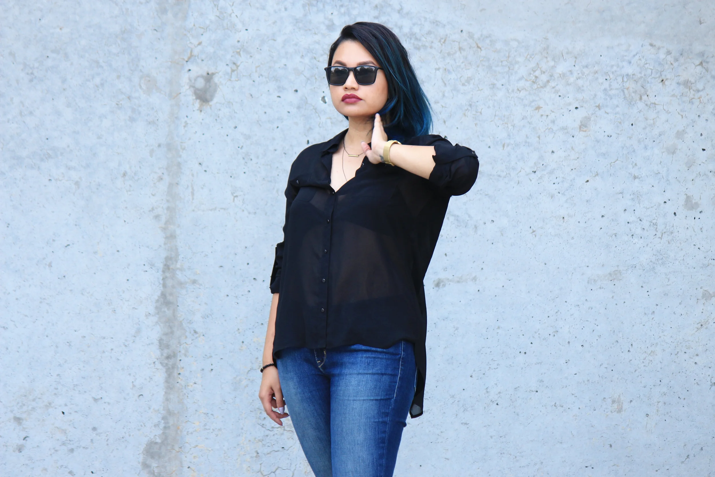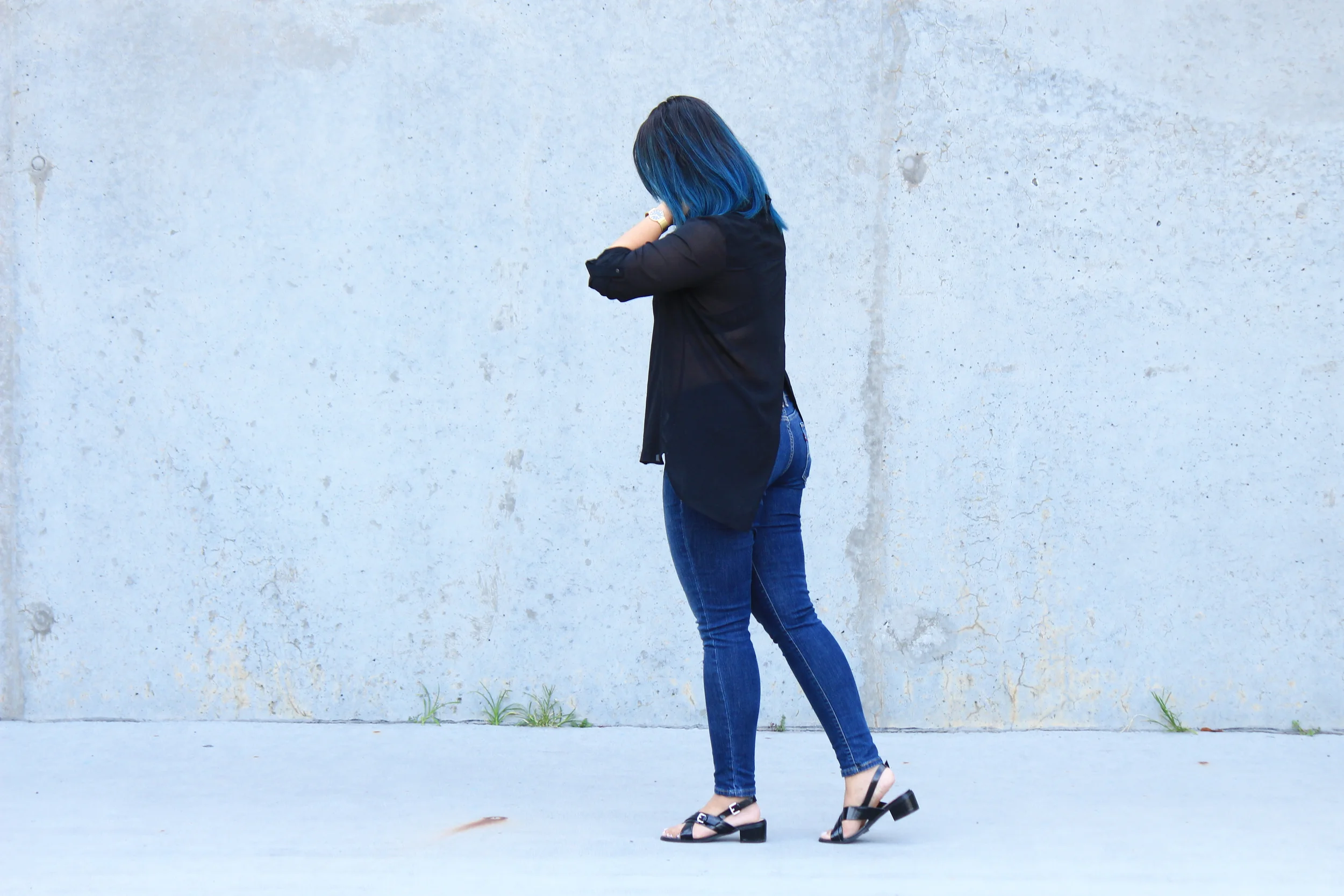 I decided to keep it simple with these perfectly fit Levi's jeans and pairs it with a sheer black top and some black sandals.