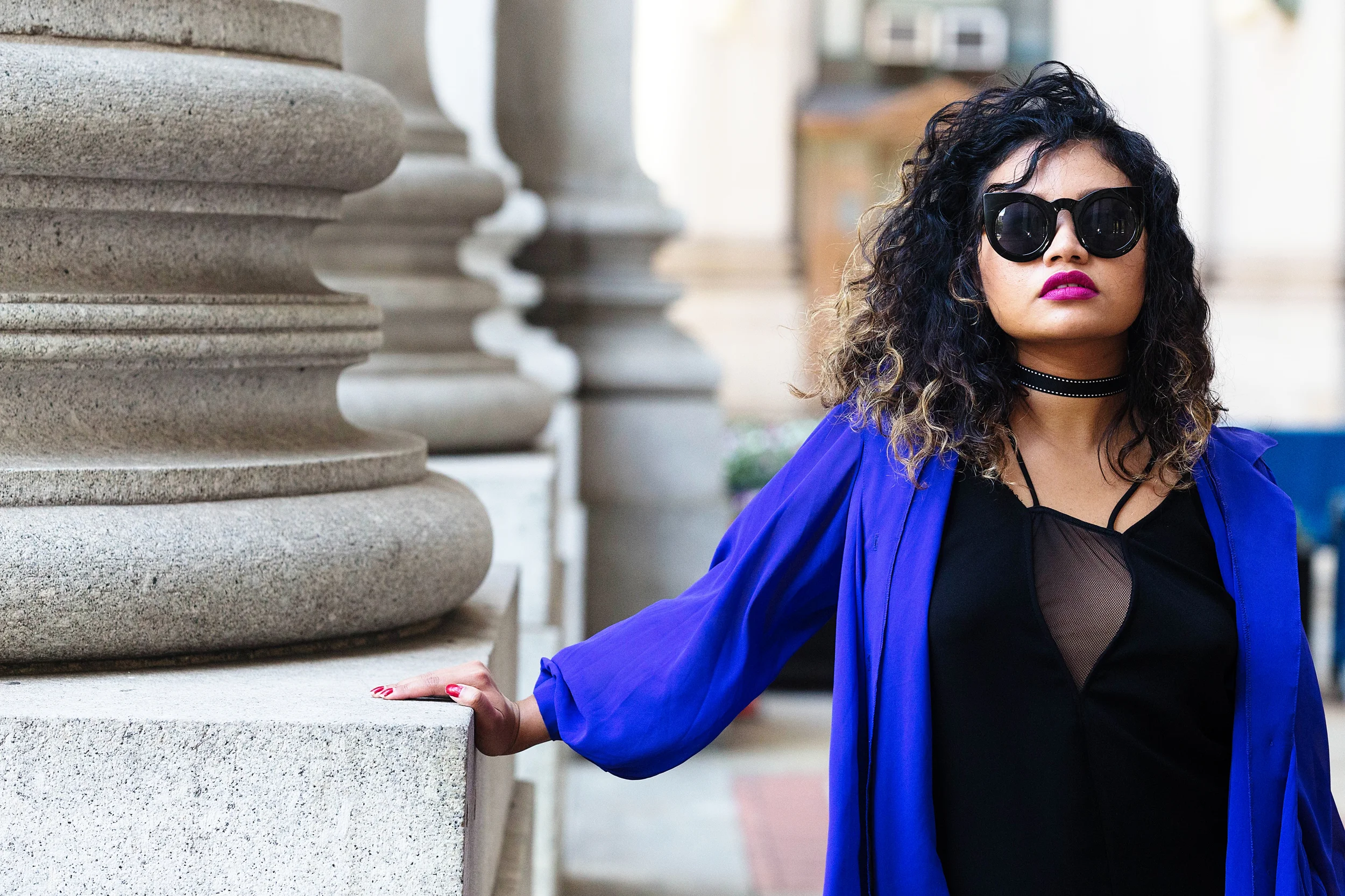 This royal purple caught my eye and it make me feel luxurious without spending an arm, a leg & a torso! I figure I wear it with an all black ensemble to really make the purple stand out, like it needs any more help standing out.