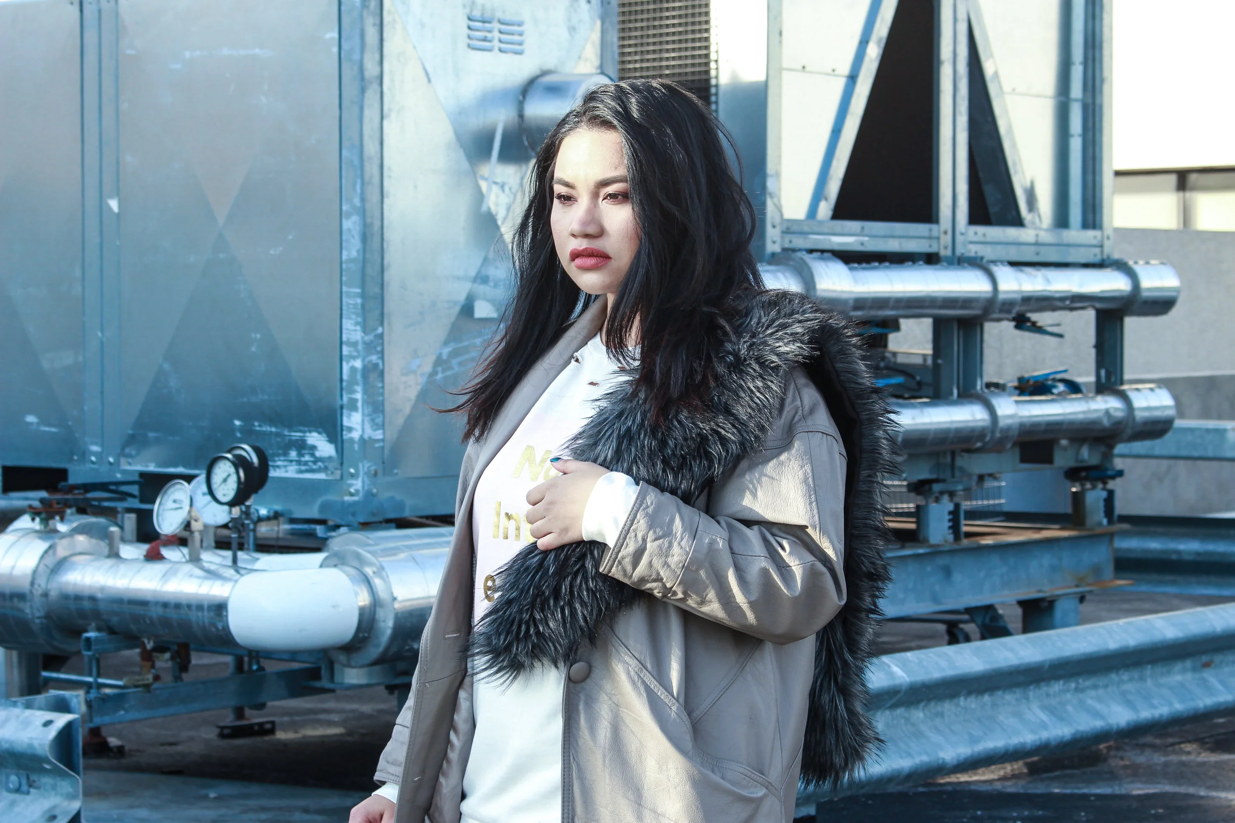 Leggings & Faux Fur shawl: ASOS