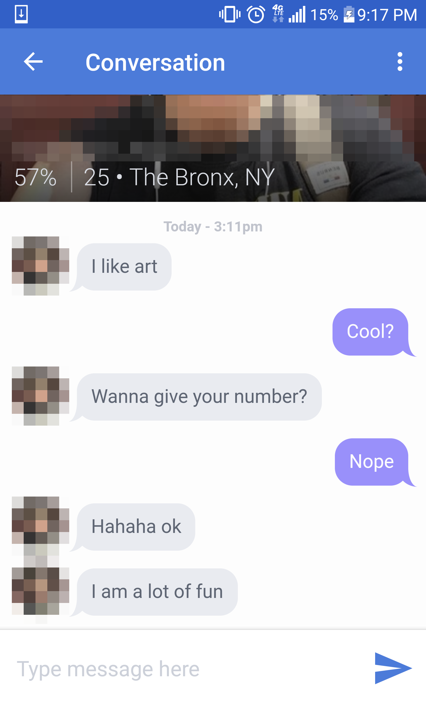 Or the guy who wants more photos of me because why would he start conversation with someone without a face, right?