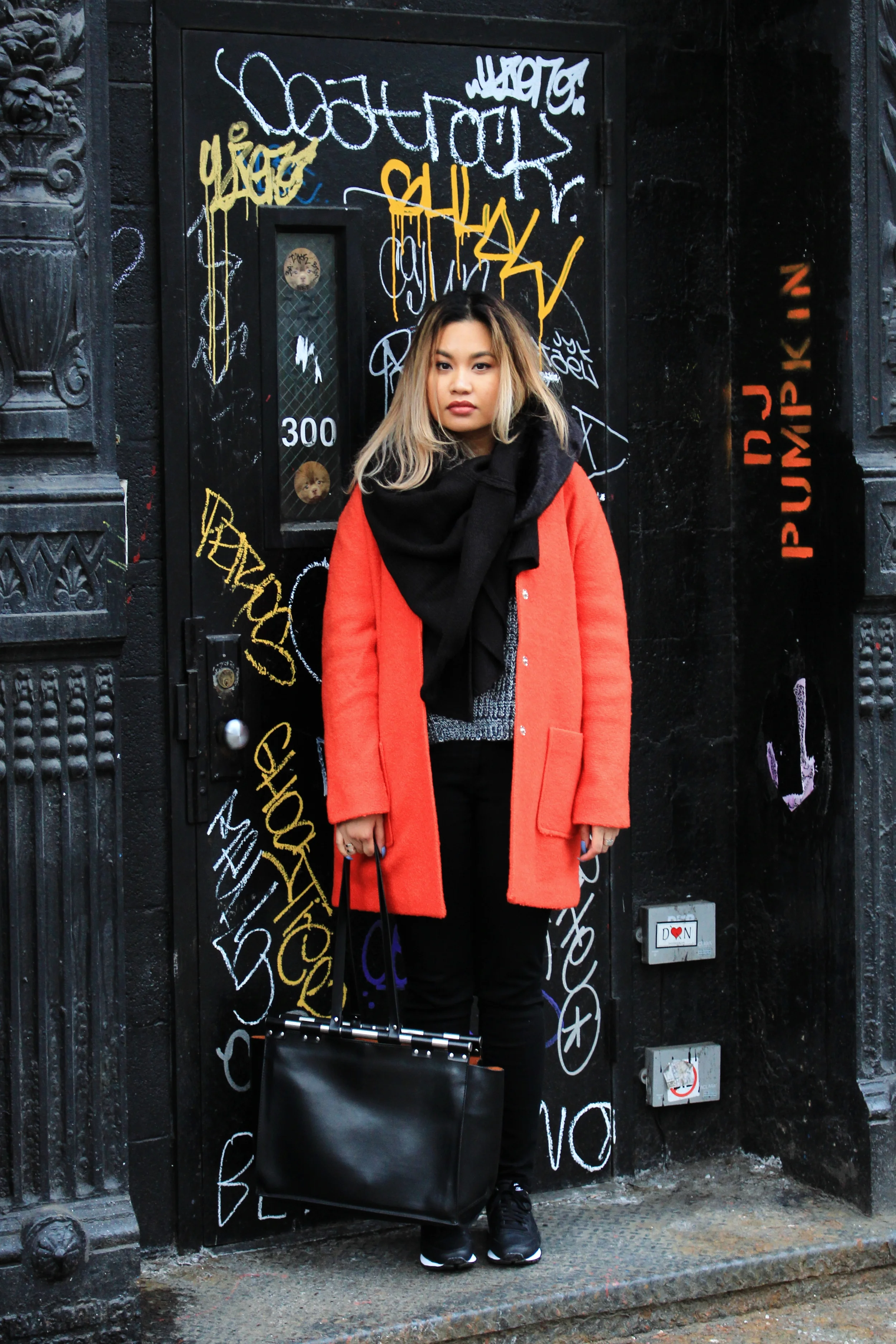 Thoughts on my uber bright orange coat? Do tell :)